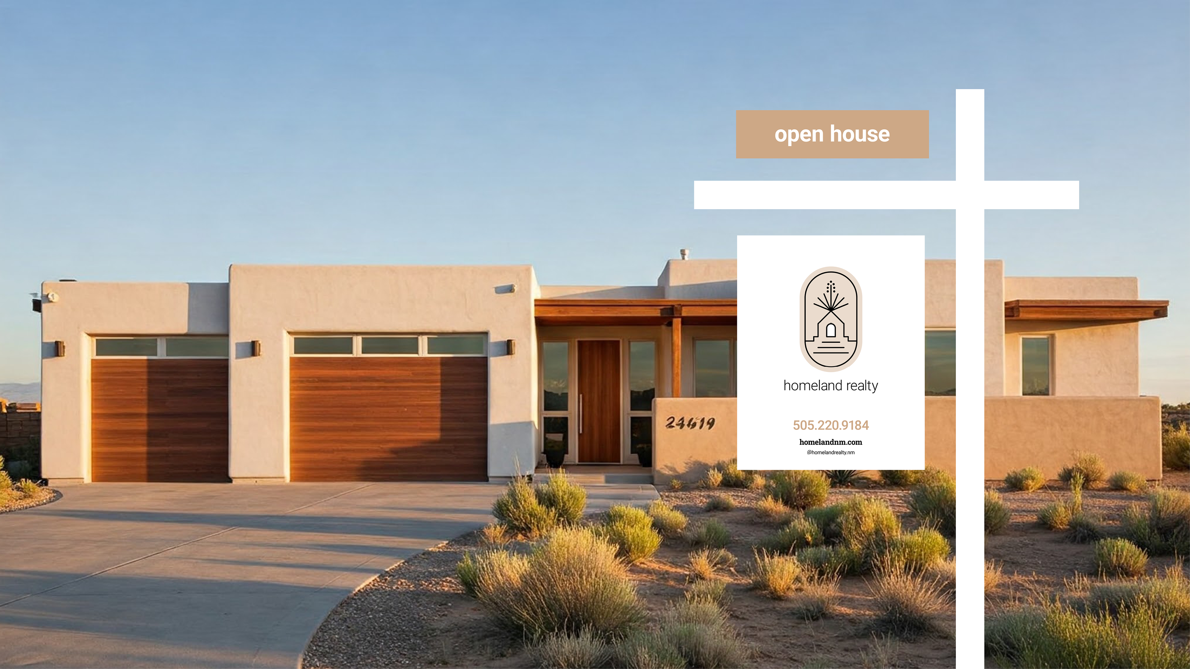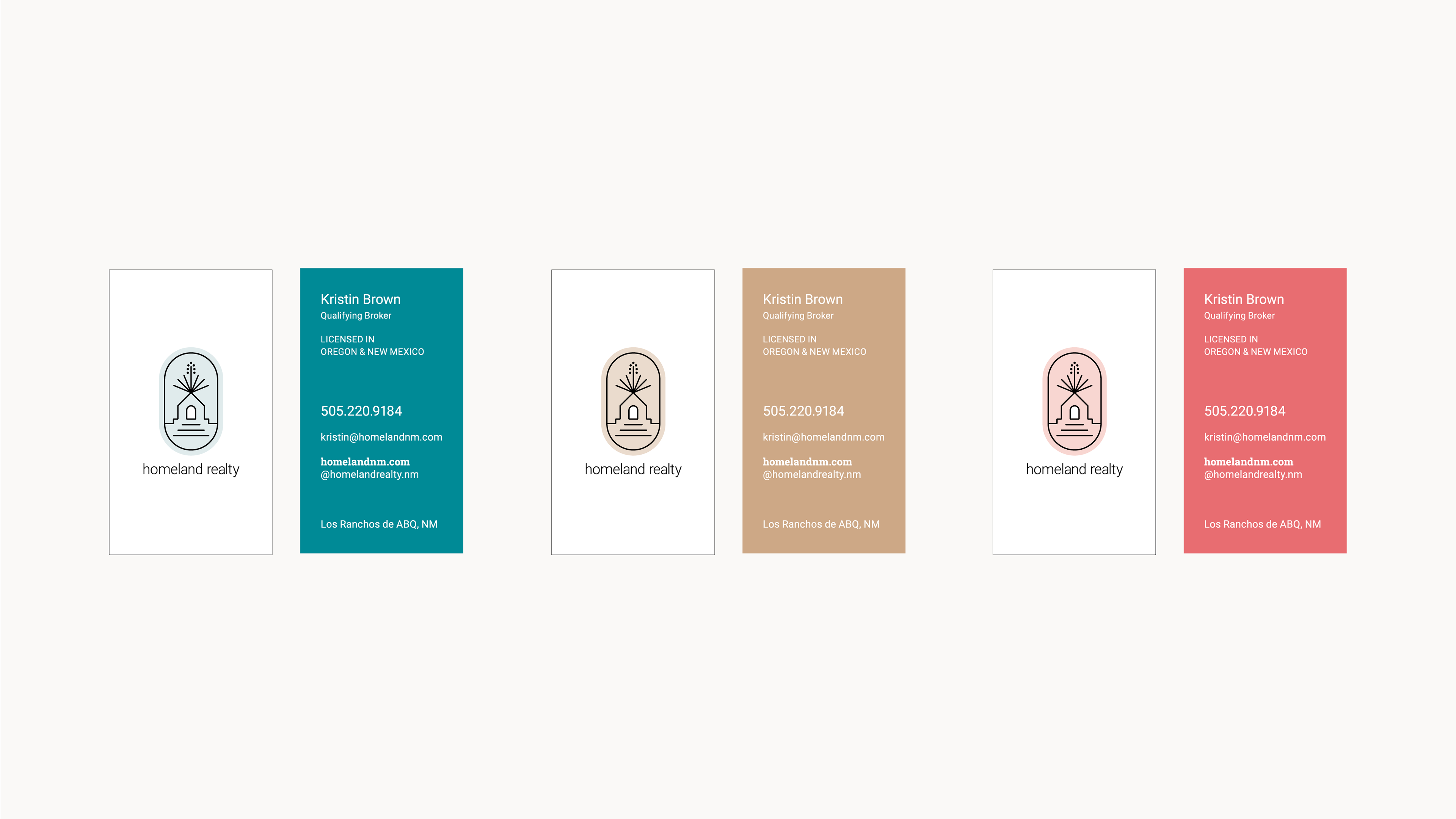 Created a complete brand identity and digital presence for Homeland Realty, a real estate company rooted in New Mexico. The visual system blends modern simplicity with Southwest warmth, capturing the region's lifestyle, light, and sense of place. The identity includes a custom logomark, color palette, typography, signage system, business cards, and marketing assets.