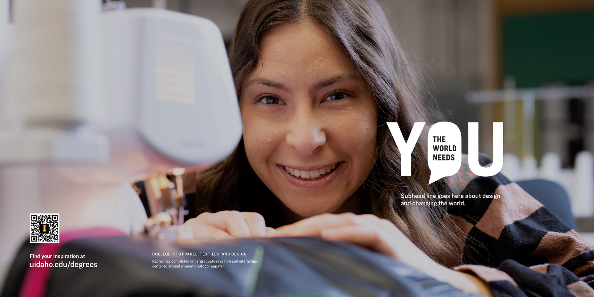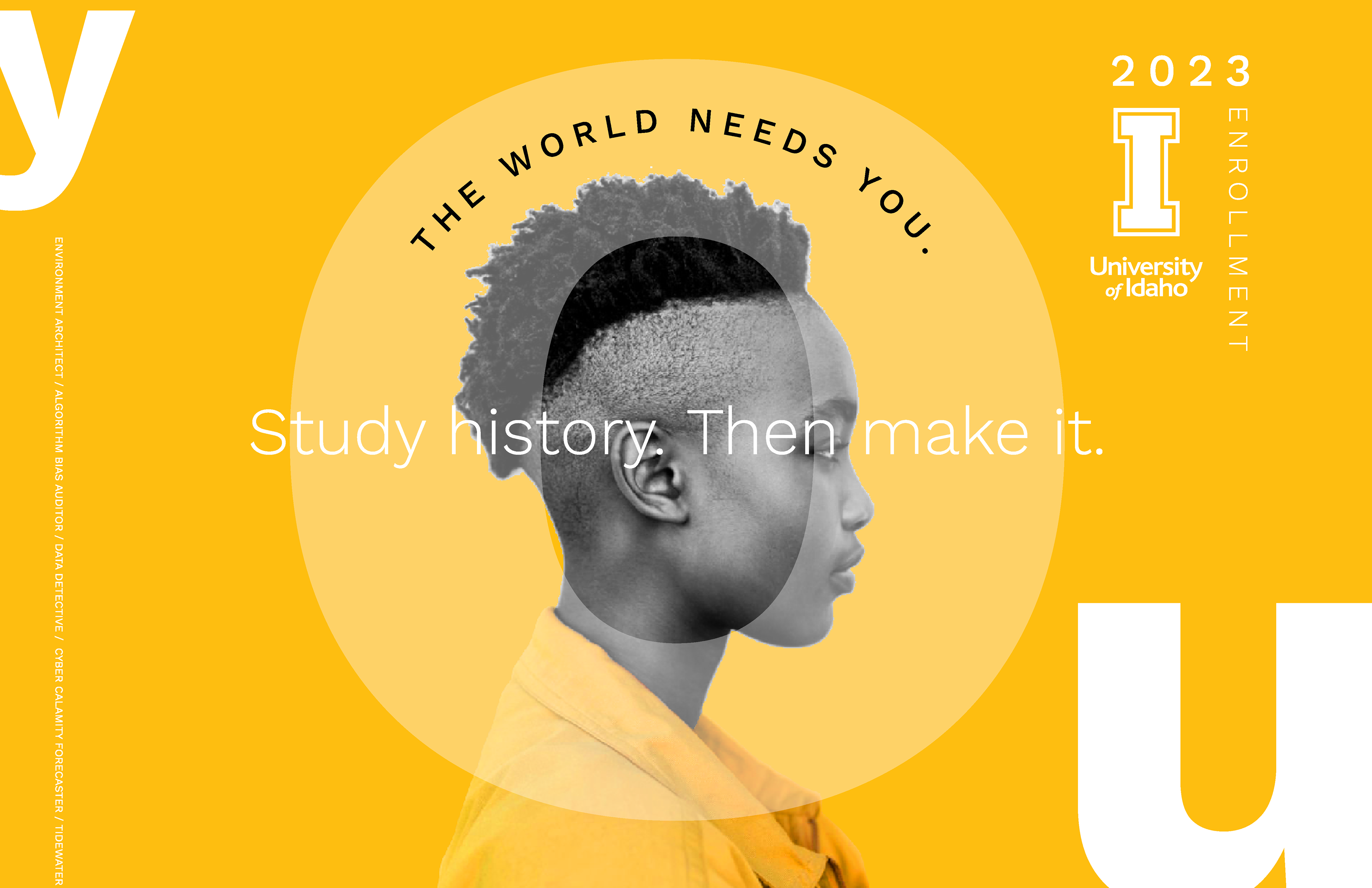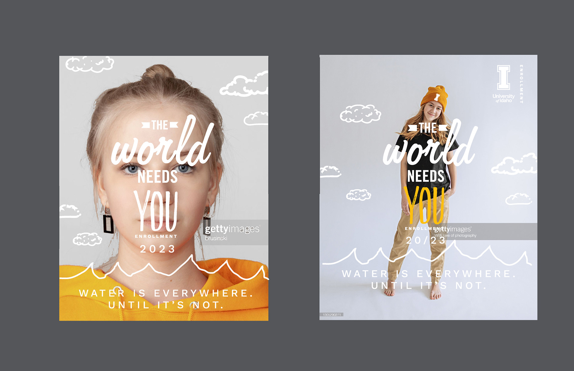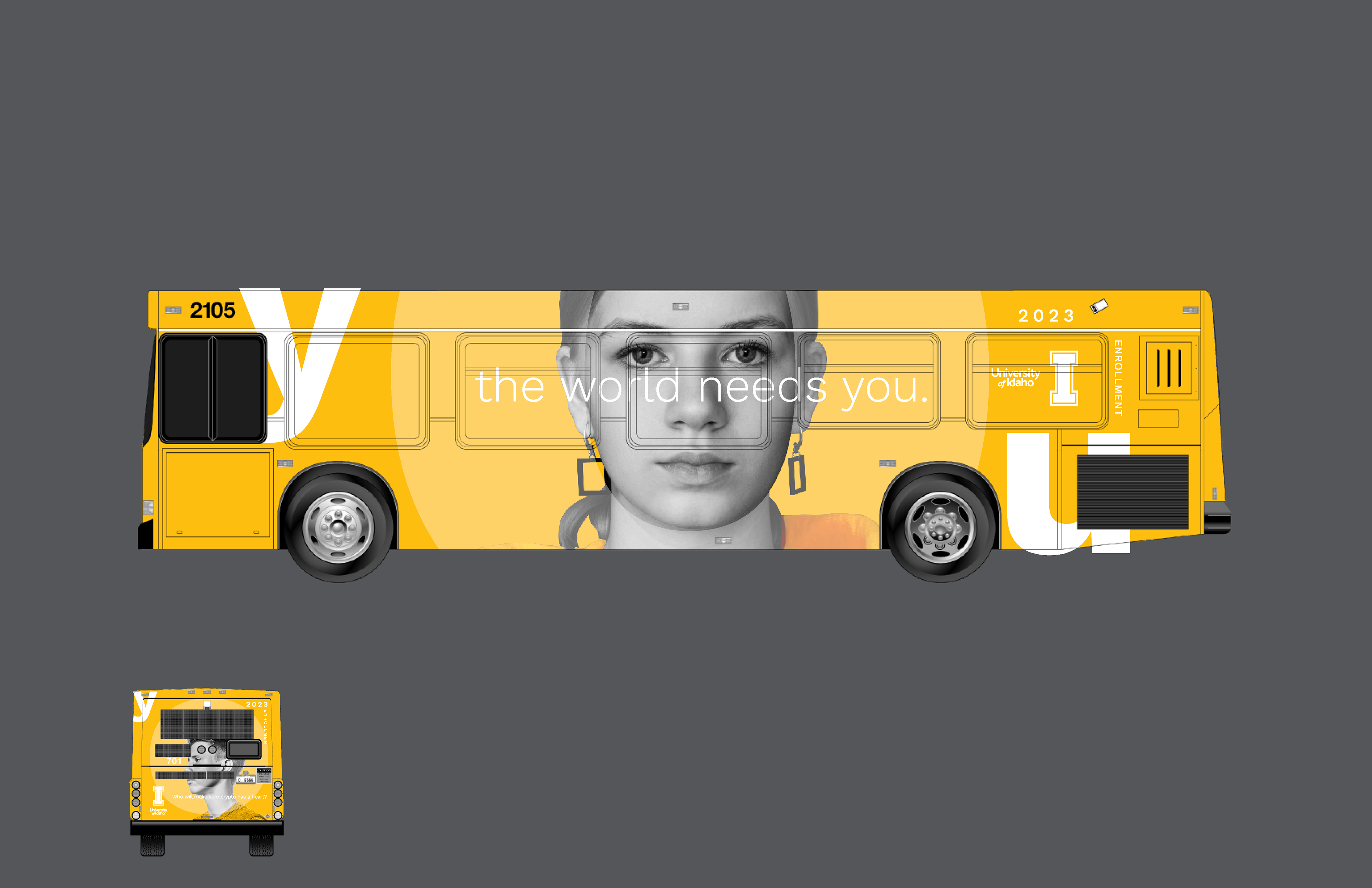 Developed an integrated campaign for the University of Idaho, built on the message “The world needs you.” The concept positioned students as essential contributors to the future. Across print, outdoor, and digital applications, the design language emphasized individuality, optimism, and empowerment through bold typography and expressive imagery.