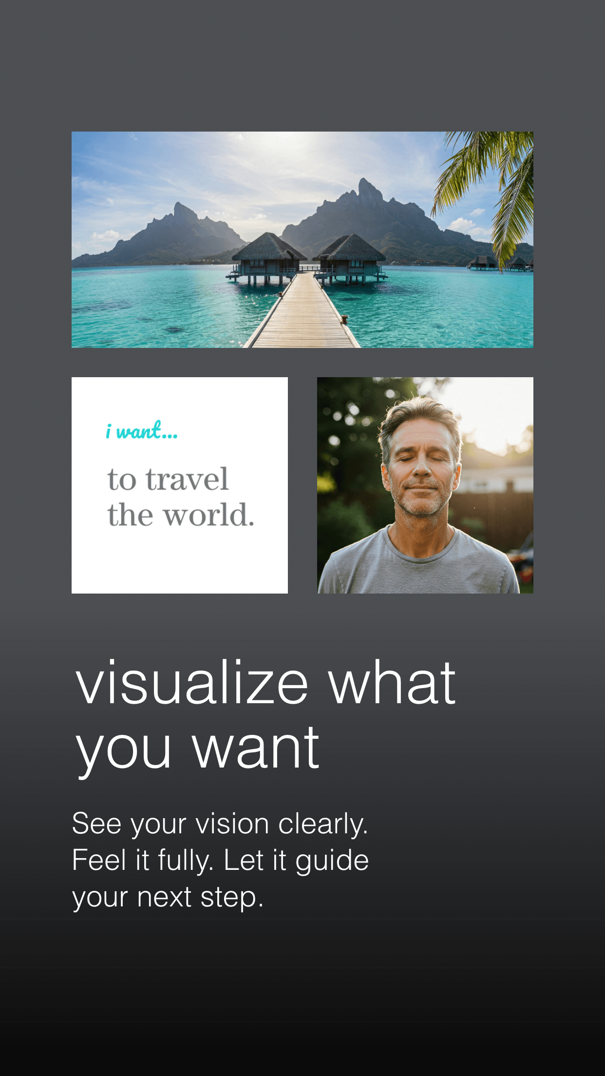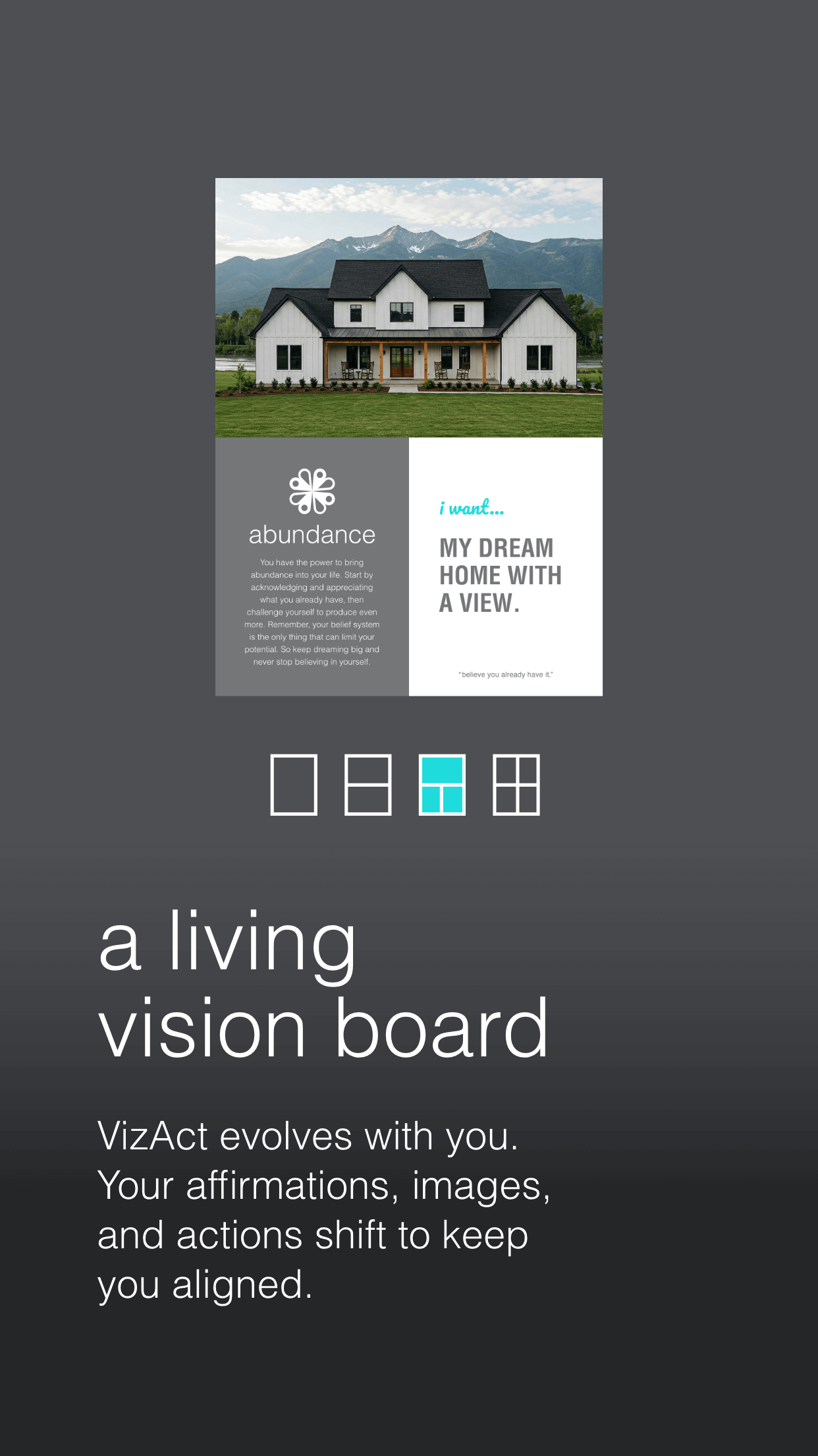 Designed the full product experience for VizAct, a manifestation app that helps people bring their dreams to life through visualization, affirmation, and aligned action. The interface combines emotional clarity with intuitive flow, centered on the Living Vision Board concept. Each screen and motion sequence reinforces the philosophy “See it. Feel it. Believe it.”