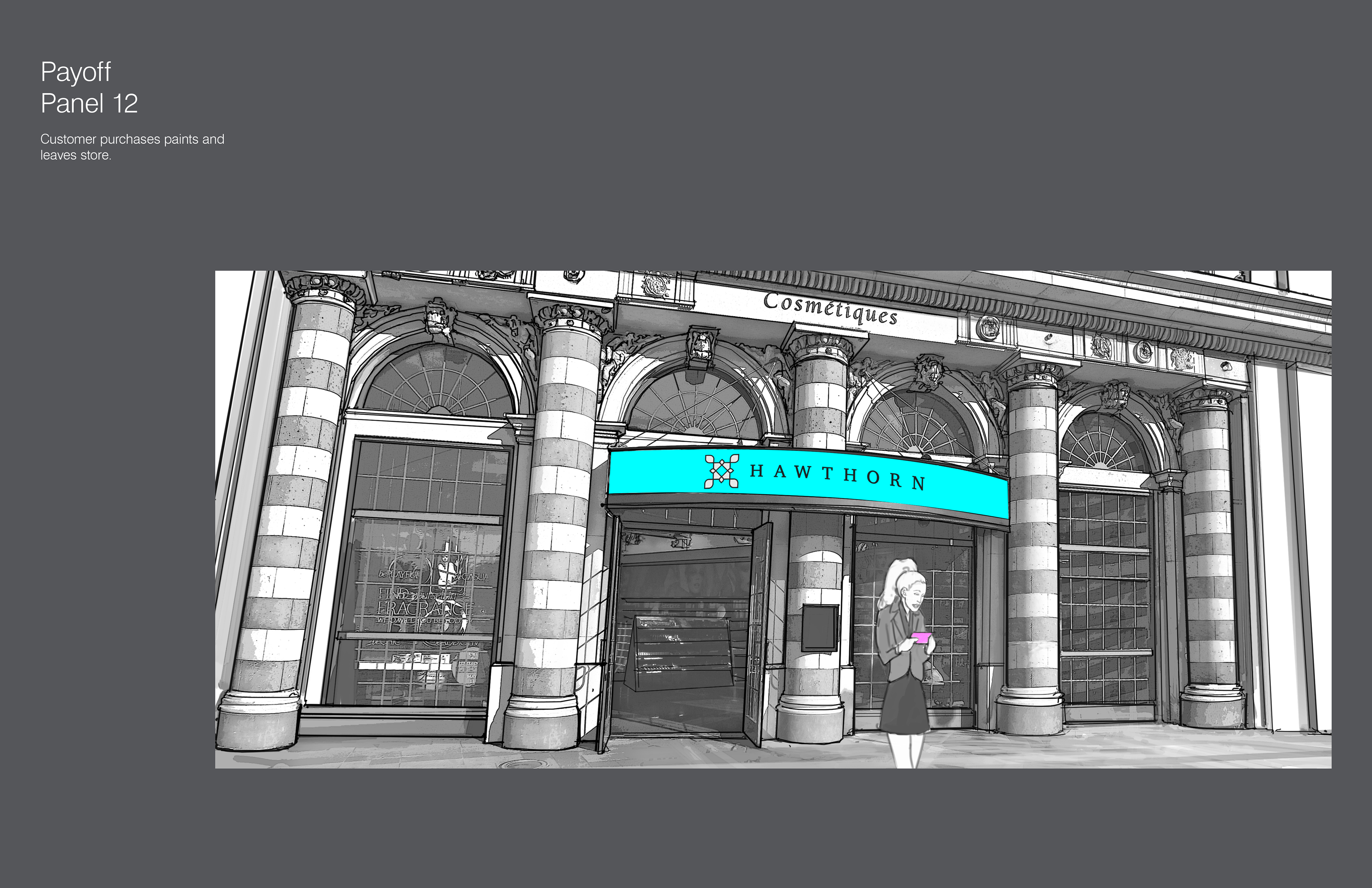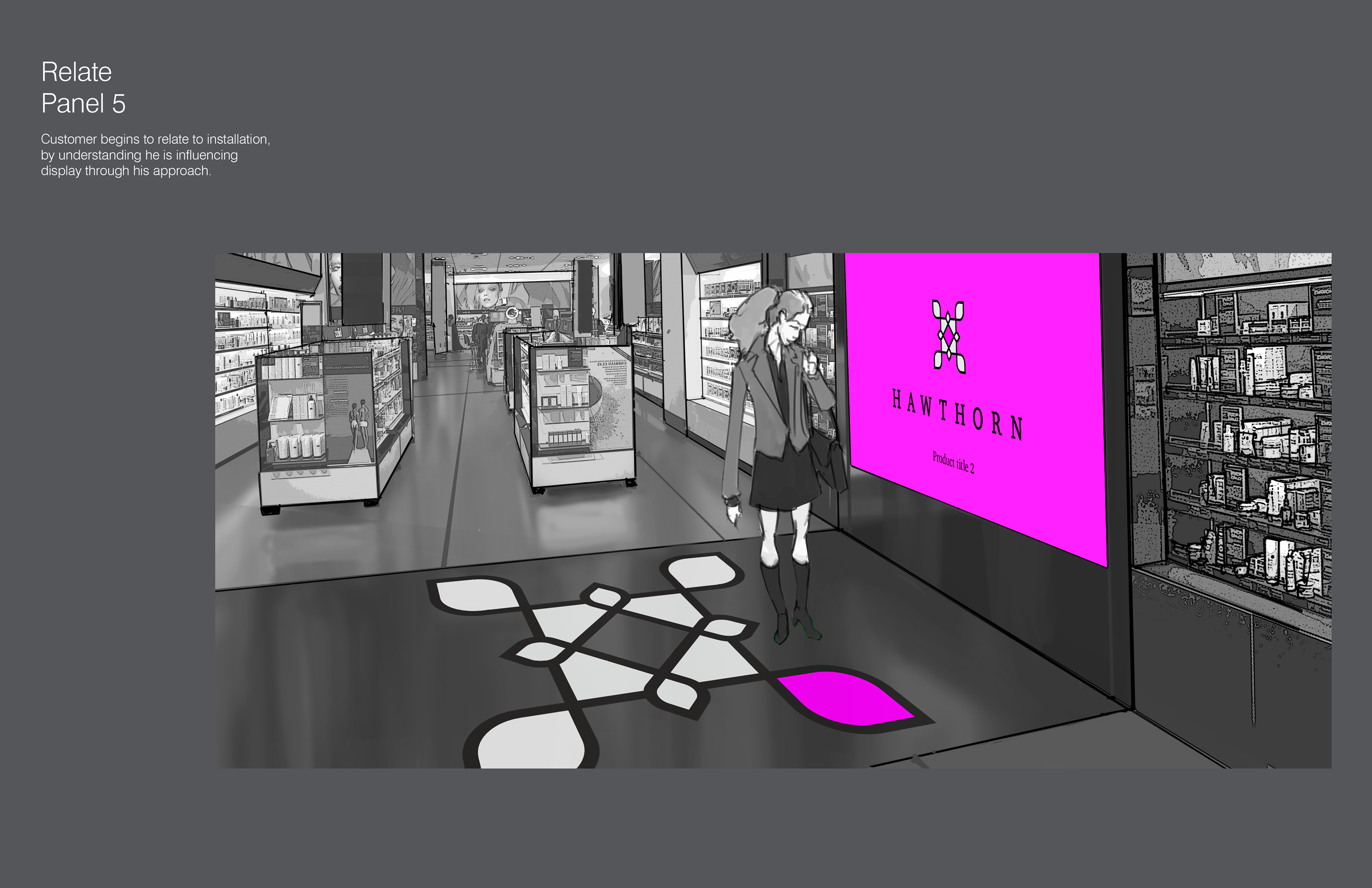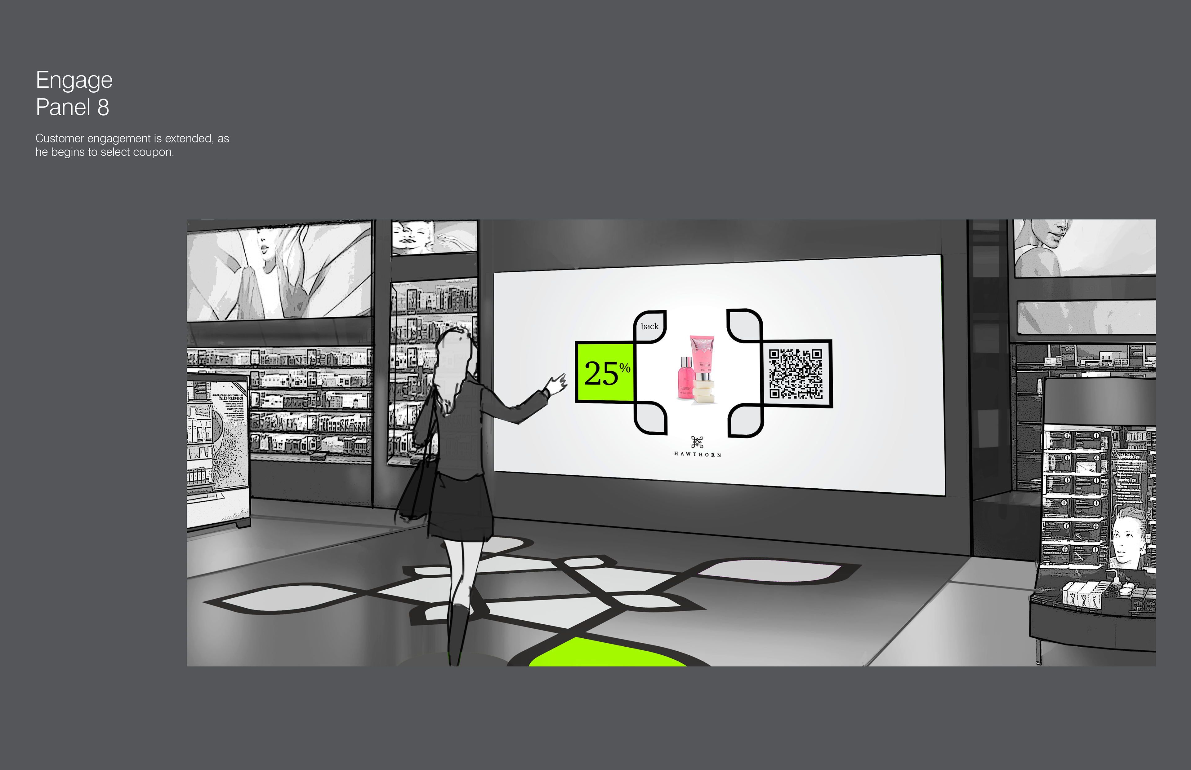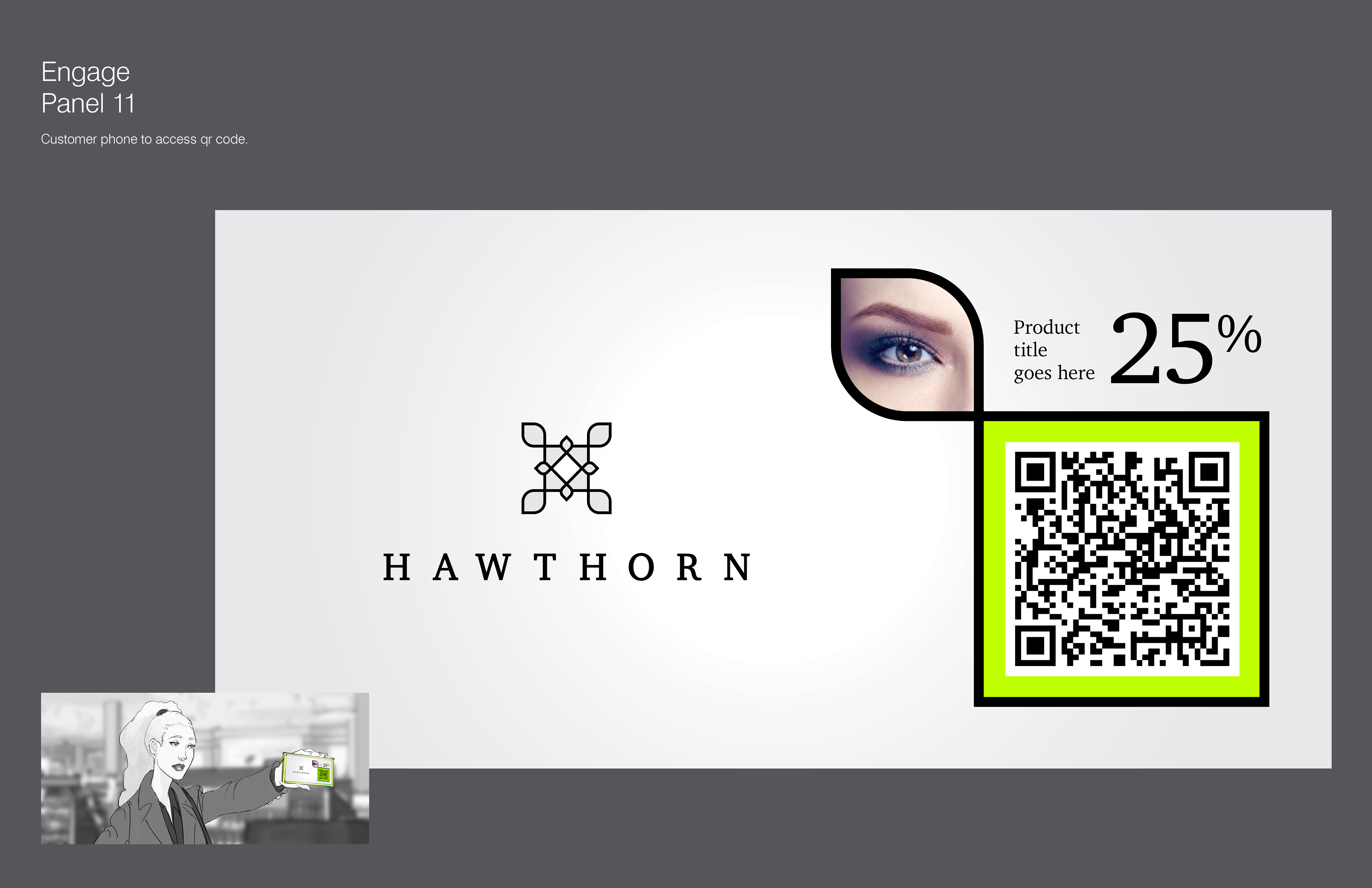 Interactive Retail Experience Created an interactive in-store experience for Hawthorn that guided customers through discovery and engagement. Motion panels responded to movement, displaying personalized content and dynamic offers in real time. The concept combined environmental design, UX thinking, and technology to create a seamless connection between brand, space, and product. Includes: product • branding • digital