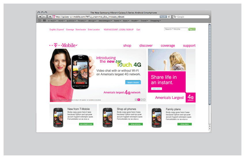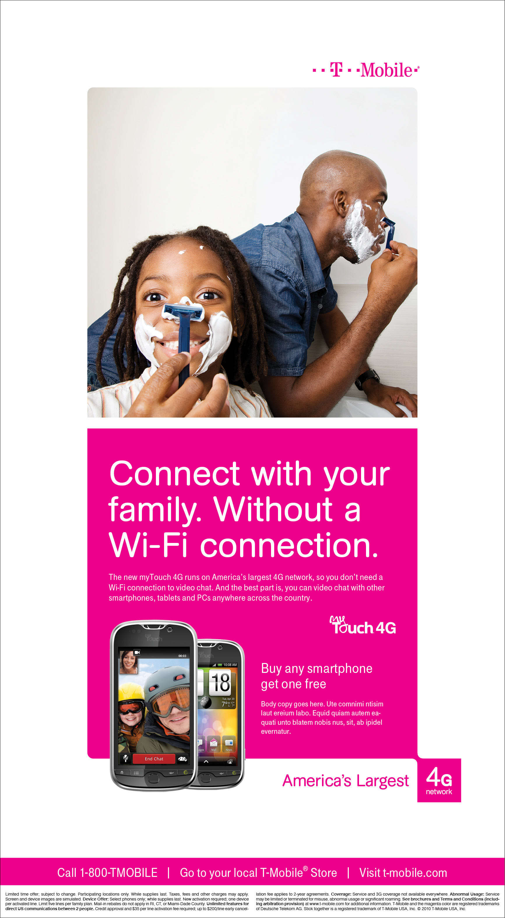 Developed conceptual campaign systems for T-Mobile focused on human connection and clarity of message. Each direction explored different expressions of the brand, from emotional lifestyle storytelling to bold graphic abstraction. The visual language emphasized simplicity, energy, and consistency within T-Mobile’s magenta identity.