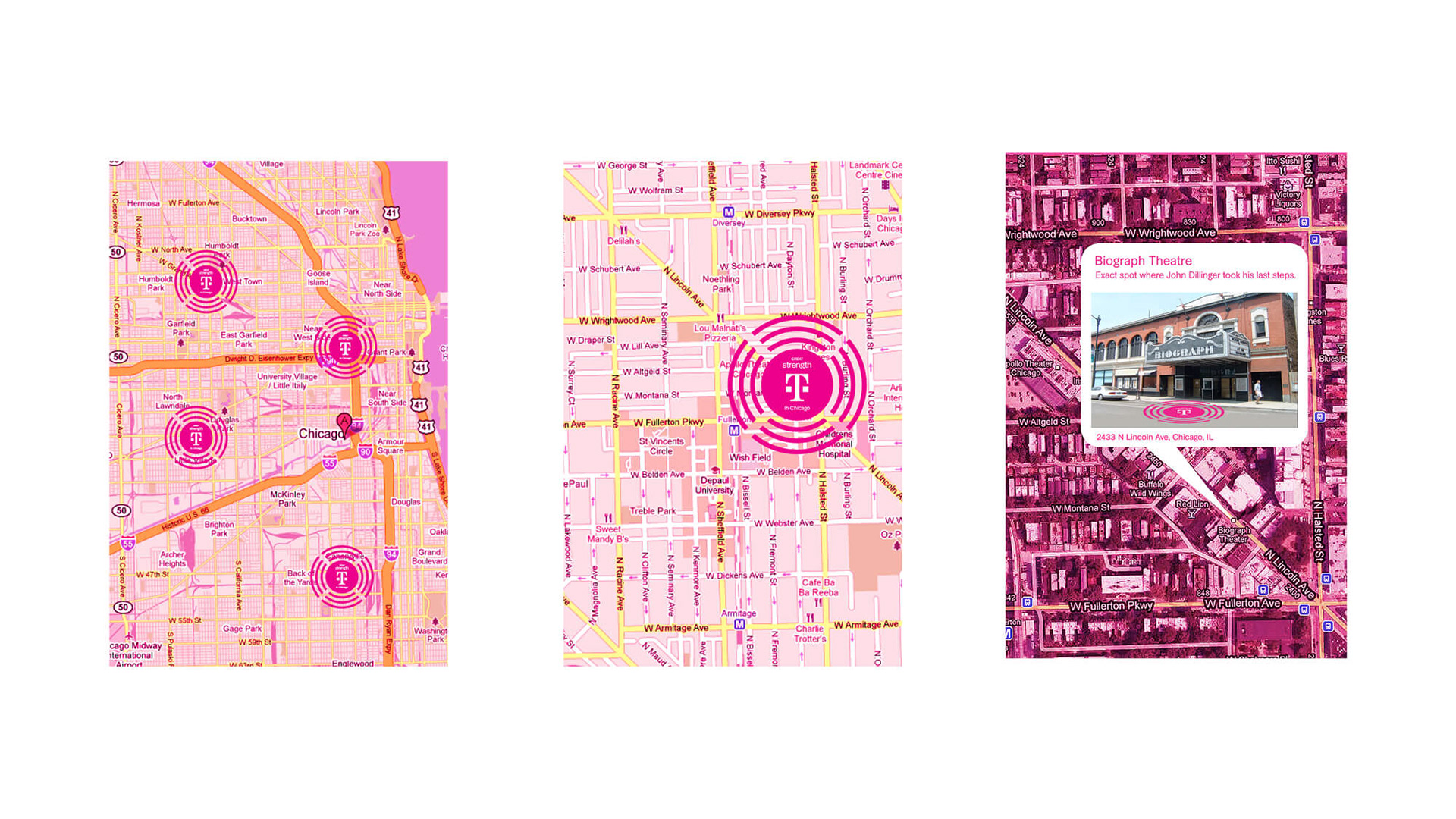Created conceptual directions for T-Mobile highlighting the strength and reach of its national network. Visual ideas explored how coverage could be represented through location-based graphics, interactive experiences, and large-scale installations. The system blended clarity, energy, and the brand’s signature magenta to express confidence and connection.