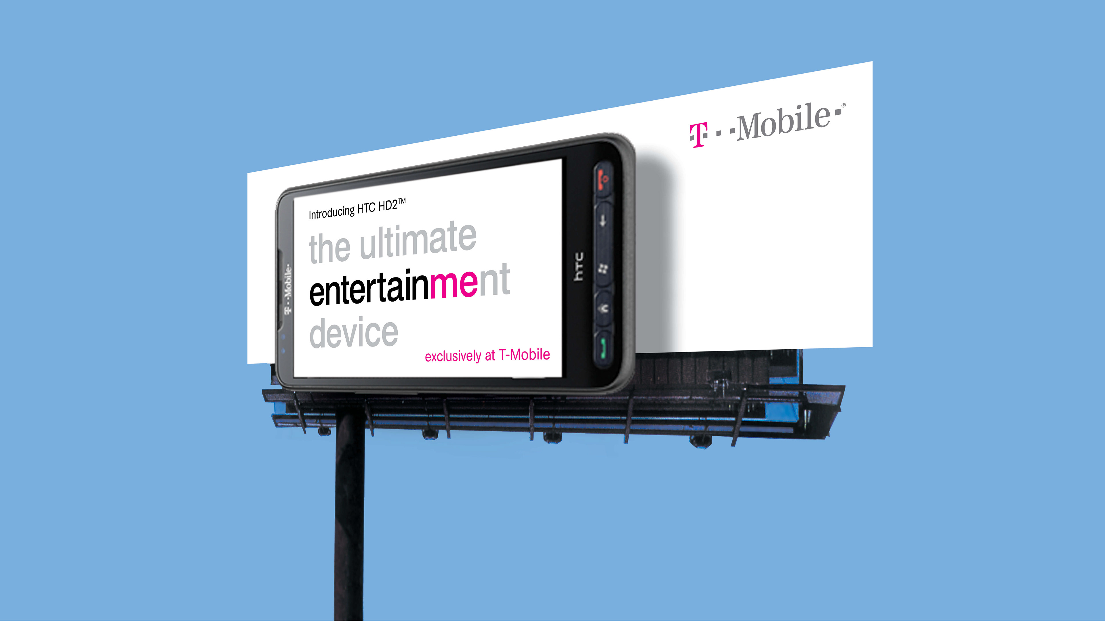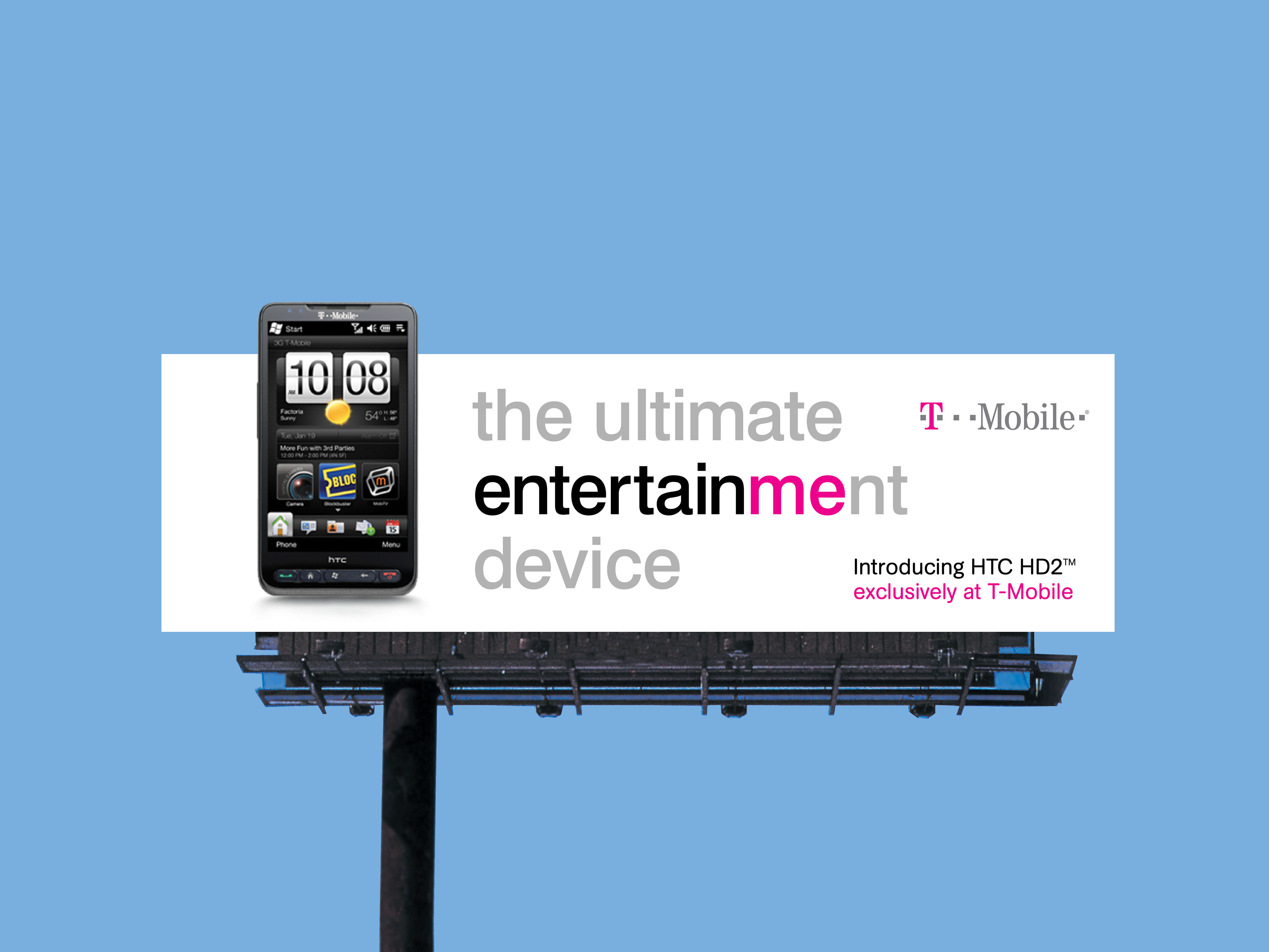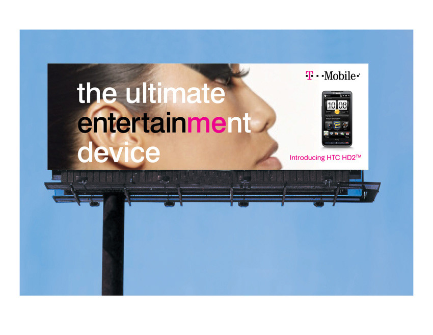 Developed digital and outdoor campaign creative for the T-Mobile HTC HD2 launch, positioning it as the ultimate entertainment device. The system unified messaging across web, outdoor, and social placements, using clean typography and bold color to connect emotion with performance. The result was vibrant, modern, and distinctly T-Mobile.
