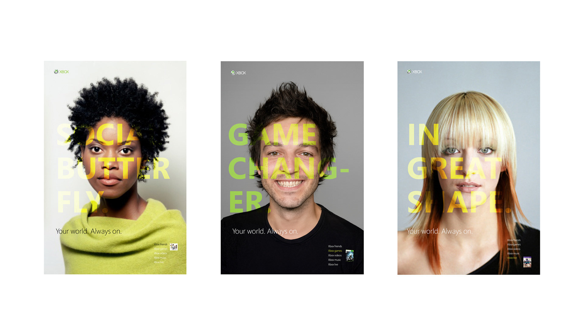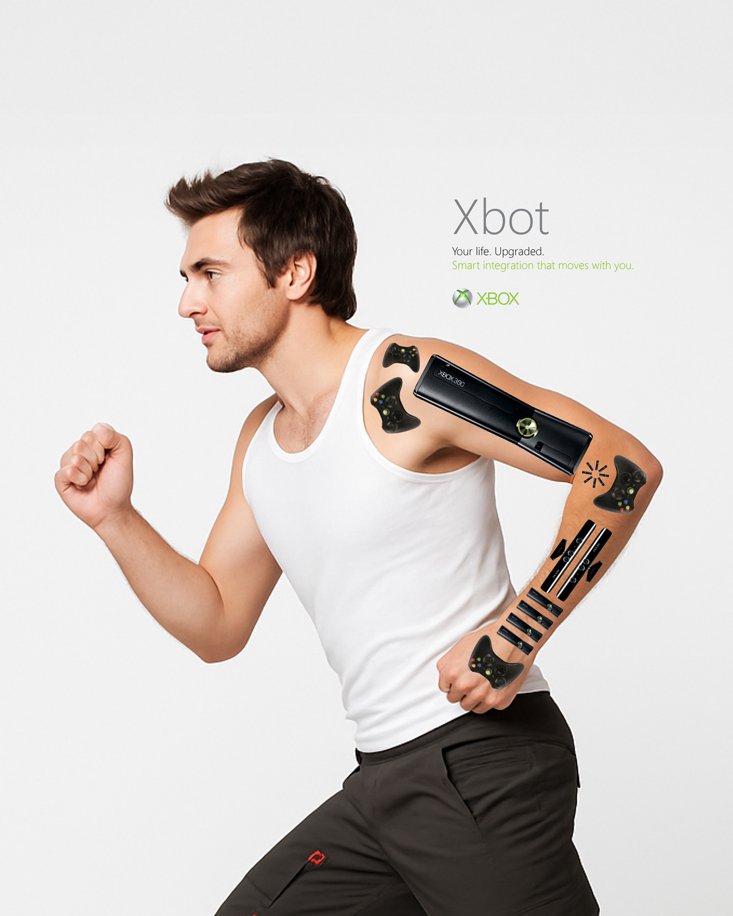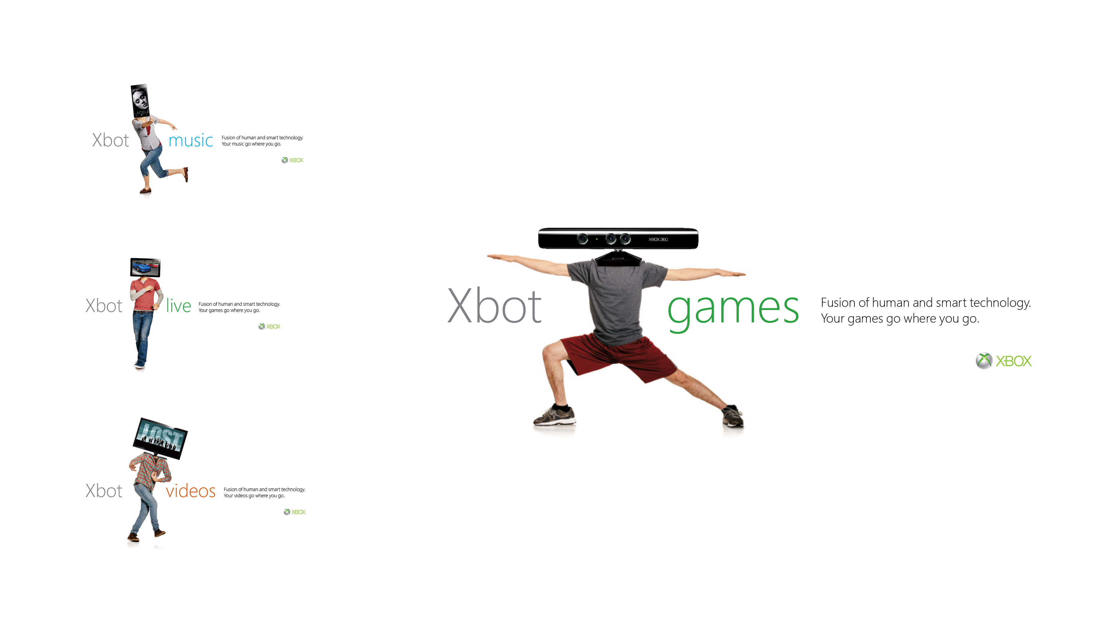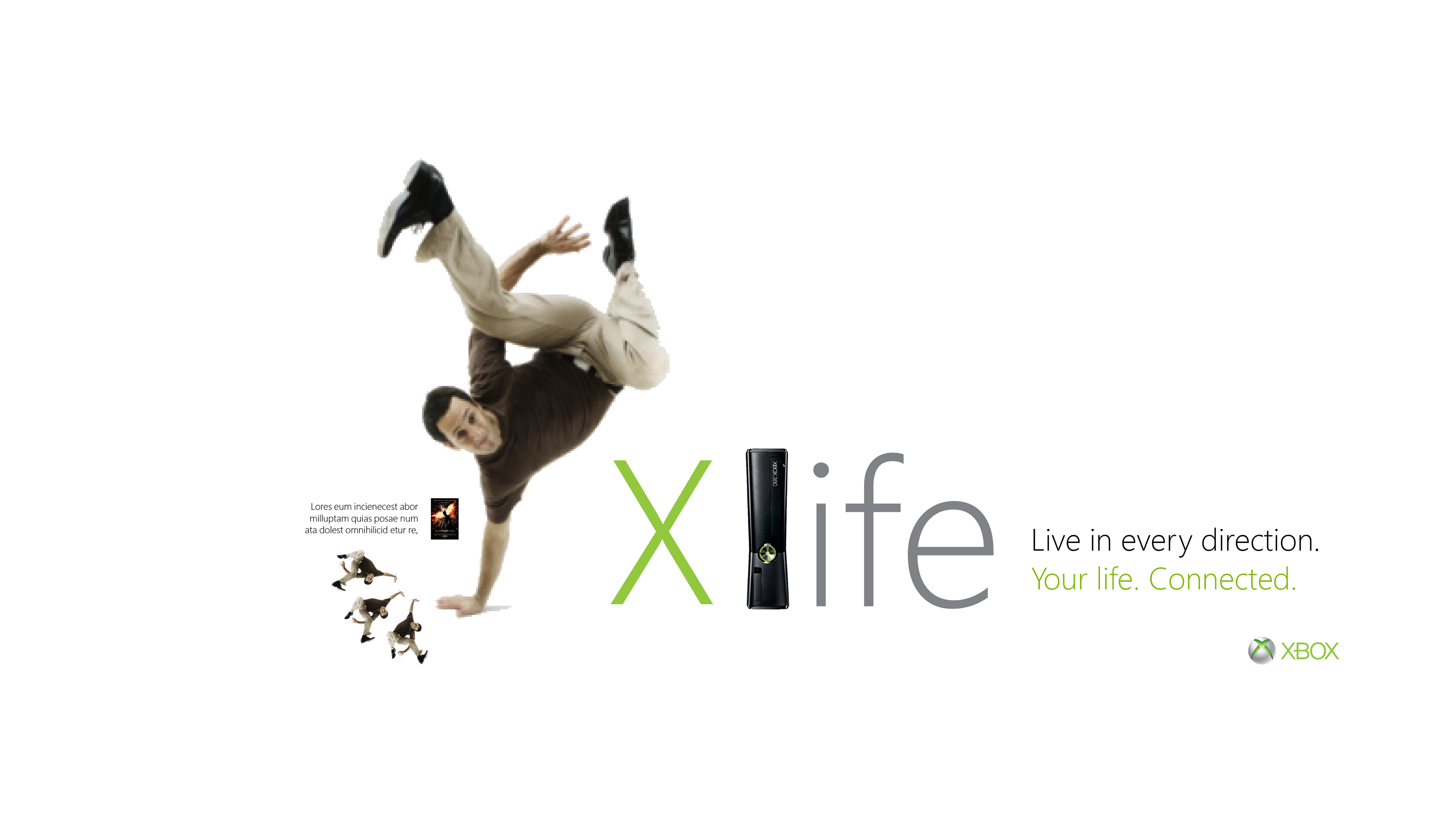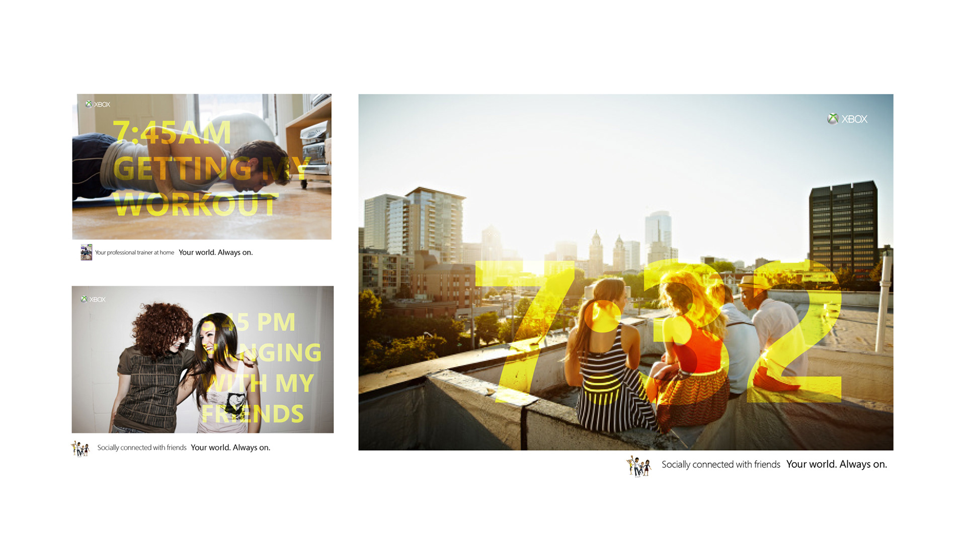 Created conceptual campaigns exploring the connection between technology, identity, and lifestyle for Xbox 360. Ideas like Xlife showed life in motion 24/7 through gaming, music, and shared moments, while Xbot extended the user’s identity into the digital world. Each direction positioned Xbox as a living, evolving platform for play and creativity.